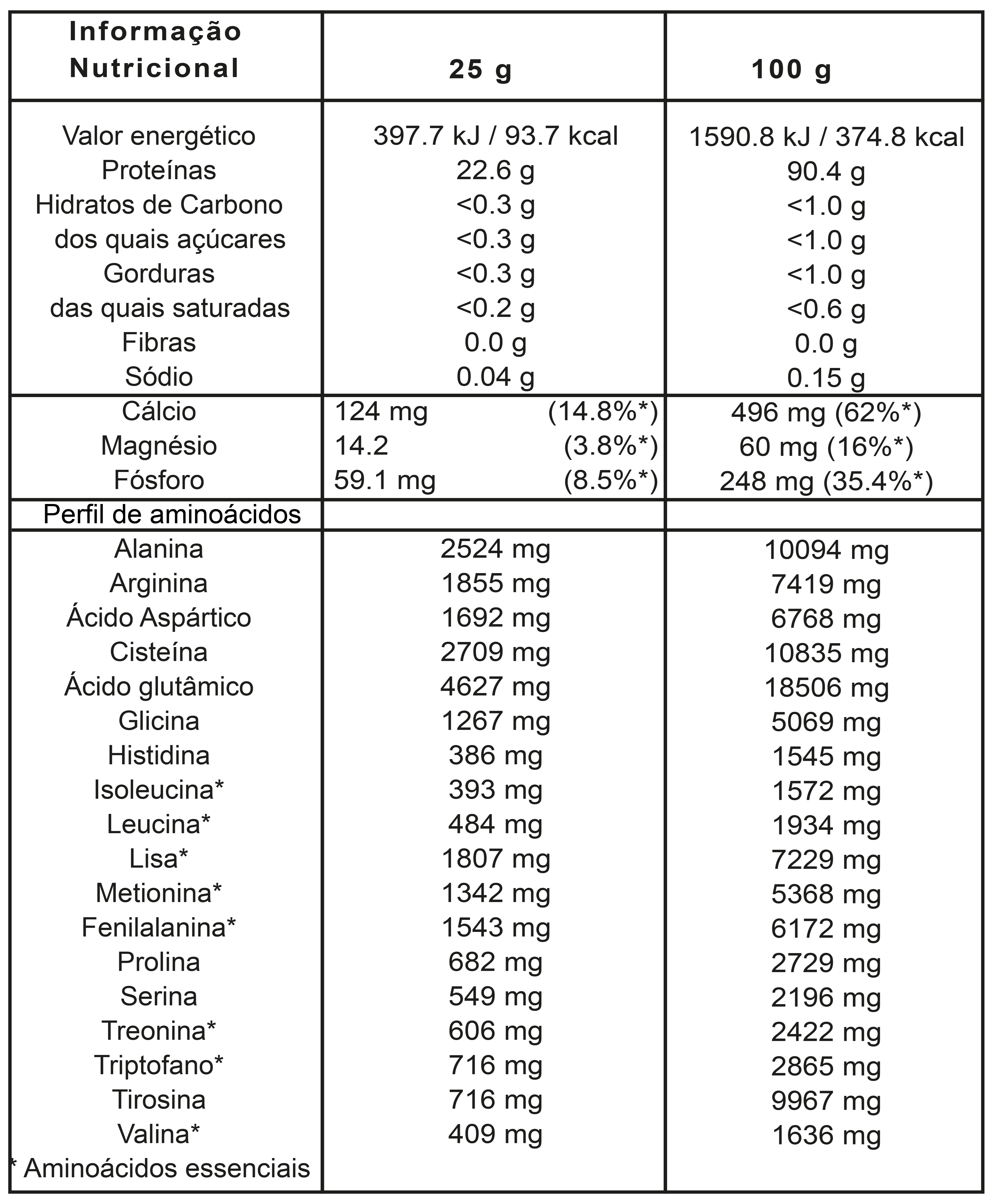 Absorção eficaz graças à ampla gama de aminoácidos essenciais e isolado de proteína de soro de leite.